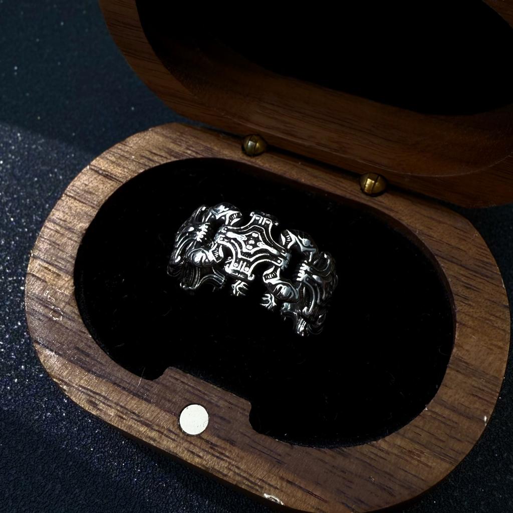 Retro Chained Crosses Adjustable Open Ring For Men Silver-plated Copper Gothic Punk Edgy Christian Accessories Cool Gift