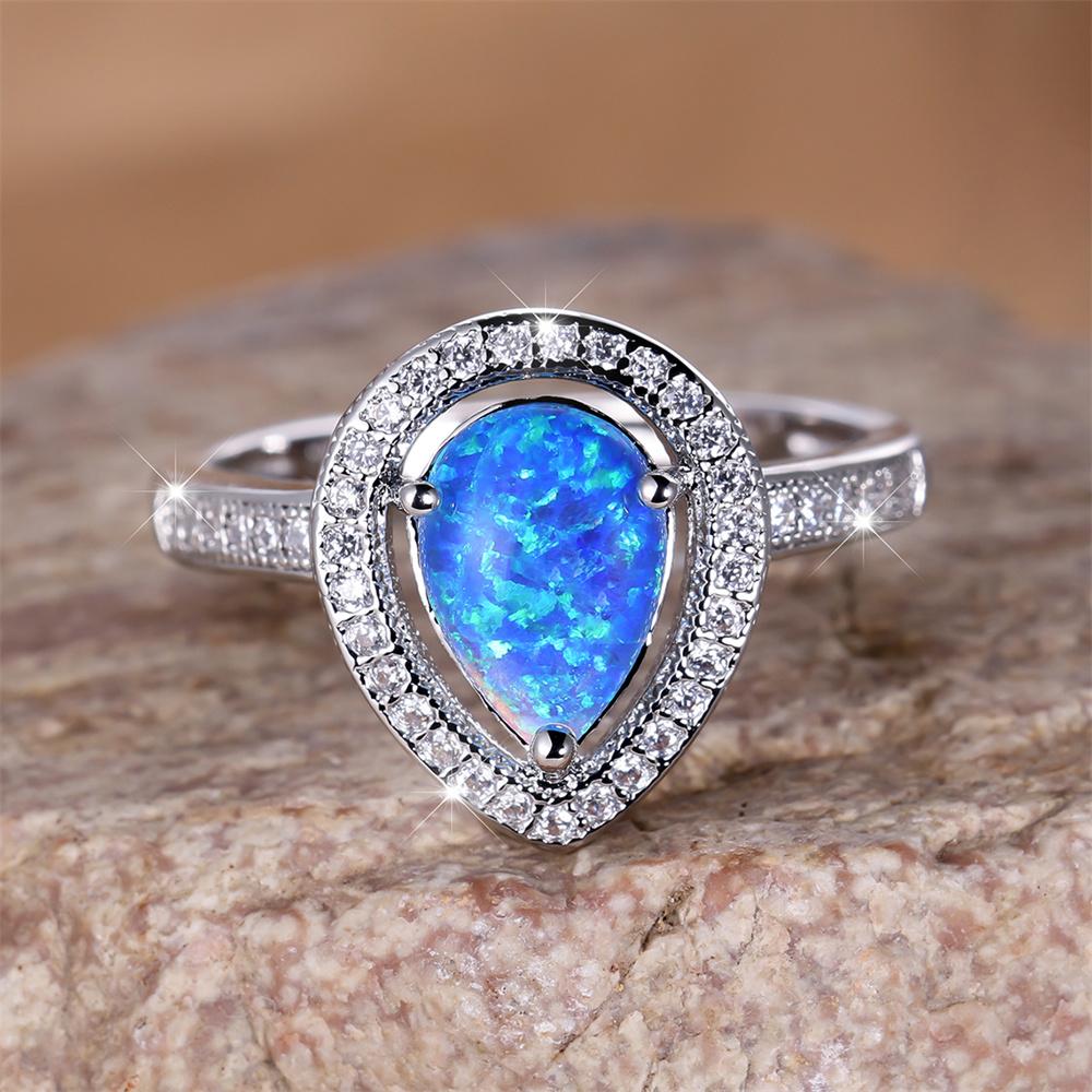 Cute Water Drop Stone Ring Blue Fire Opal Wedding Rings For Women Silver Color Engagement Accessory Mother's Day Gifts
