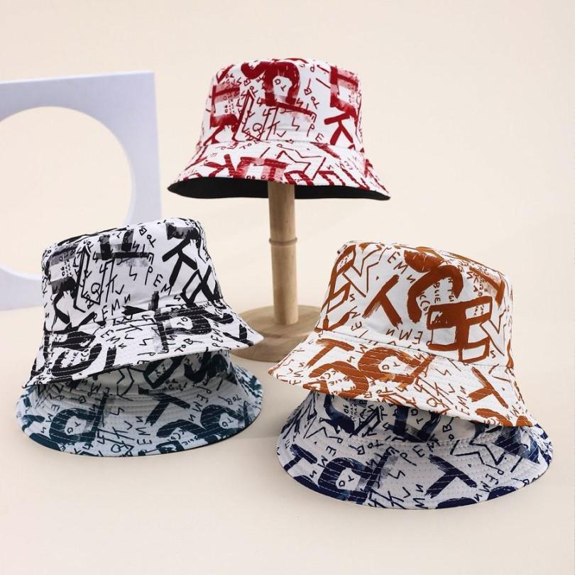 Graffiti Letter Double-Sided Bucket Hat Spring And Summer Outdoor Leisure Sun Hat Tide Basin Hat