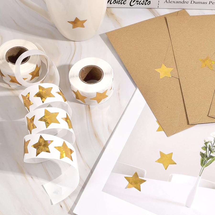 1. 500pcs Star Stickers: The package contains 2 rolls of gold star stickers, 500 pcs stickers each roll, a total of 1000 pcs star stickers, the reward sticker is 25 x 25 mm/1 x 1 in, sufficient quantity to meet your use needs2. Sparkly Star Design: Star stickers for kids reward are made of laser paper, designed in star shape, the surface is waterproof, our star sticker is shiny and dazzling, which is attractive and motivate children to behave actively3. Easy to Use: Star sticker is self-adhesive and it can be easily peeled off from the roll and applied to the surface you want4. Reward Stickers for Kids: These stars stickers can be used to encourage children's good behavior and excellent work, such as: complete household chores, toilet training and more, suitable for use at home, daycare, school, etc5. Multifunctional Star Stickers: Sticker stars can also be pasted on envelopes, cards, bottles, diaries, stationery and crafts, etc., add a touch of flair to your items, great for birthdays, Mother's Day, Christmas decorations