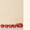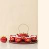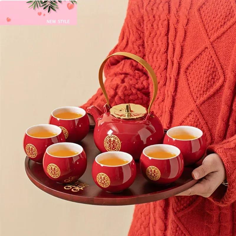 Chinese Red Ceramic Tea Set Bamboo Tray Handmade Teapot Kettle Teacup Tea Jar Household Wedding Teaware Sets Holiday Luxury Gift