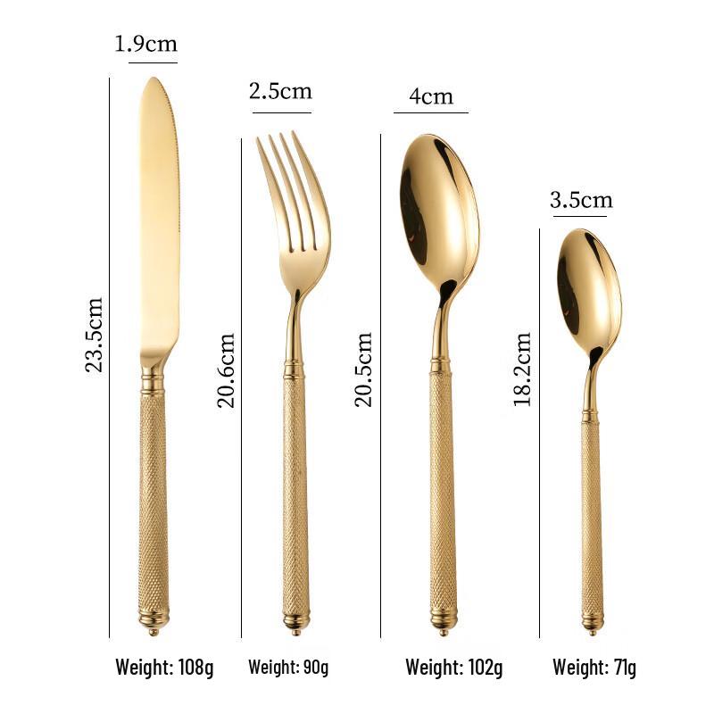 Zlatá 4dílná sada příborů z nerezové oceli 304