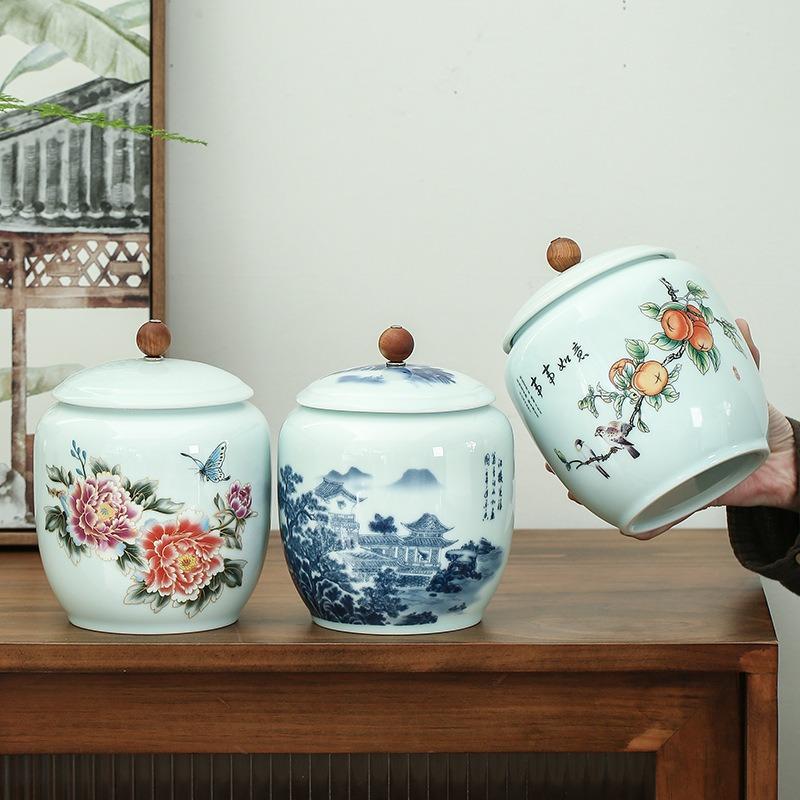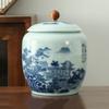 Chinese style retro ceramic blue and white tea jar, home decoration flower tea sealed storage without cross flavor