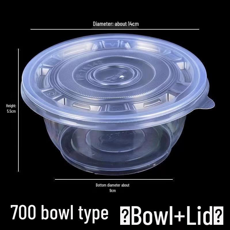 YunDuo 700ml Disposable PP Plastic Bowls with Lids, 50-Pack