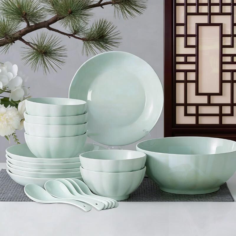 Lufenglai 19-Piece Celadon Pumpkin Ceramic Dinnerware Set