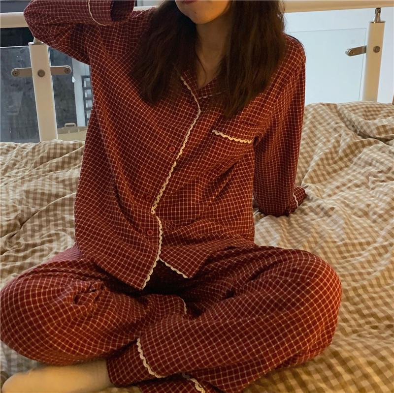 2024 Dámské pyžamo s klopou v korejském stylu: Jarní/Podzimní dlouhý rukáv a kalhoty pro elegantní domácí oblečení