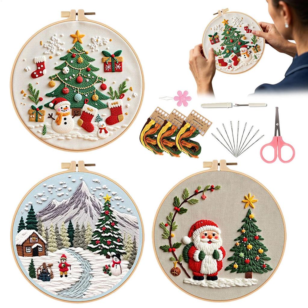 Christmas Embroidery Kits For Adults 3-Piece Holiday Handcraft Set Christmas Cross Stitching Embroidery Kit For Women Adults