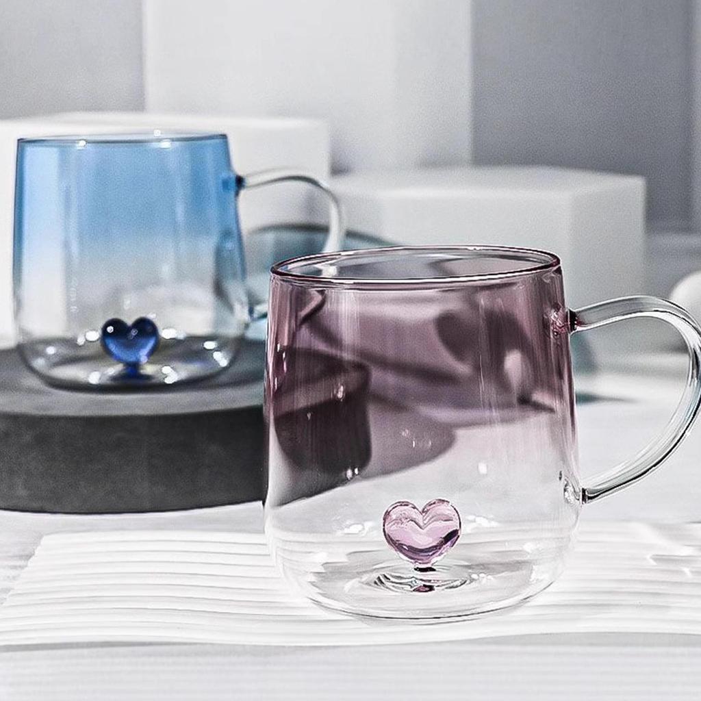 Gradient Colored Love Glass Cup Couple Breakfast Milk Cups Transparent Drinking Glasses for Juice Iced Coffee Mugs Drinkware