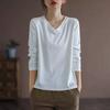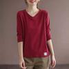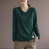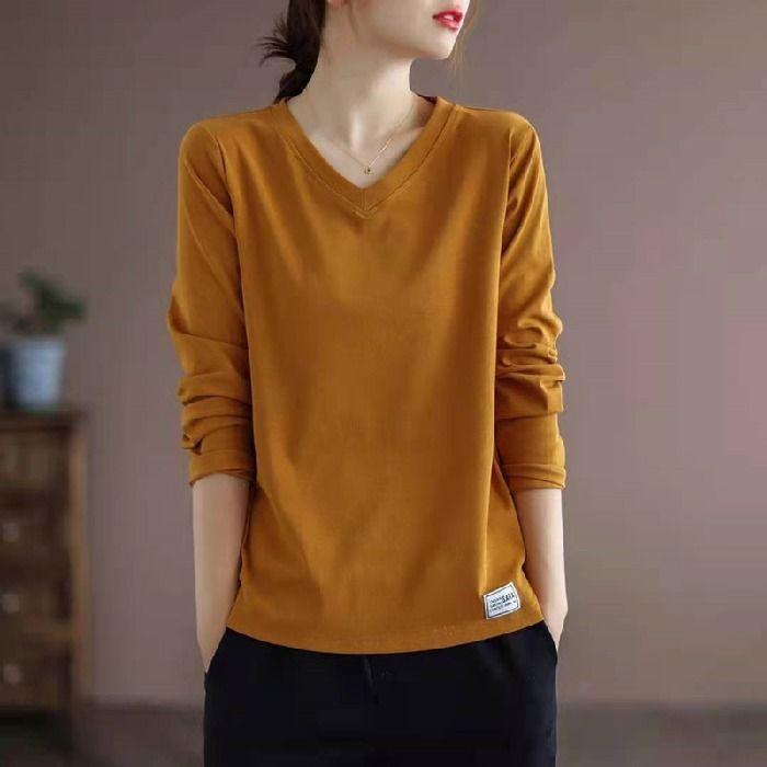 Autumn Solid Loose Casual Long Sleeve T-shirts Vintage Tops Women V Neck Aesthetic Chic Pullovers All Match Female Clothes