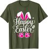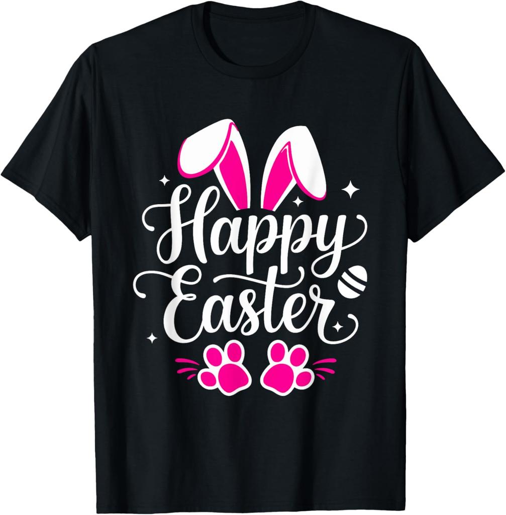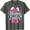 Happy Easter Bunny Paw Print Graphic Tee Casual Short Sleeve T-Shirt Daily Wear