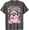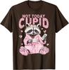 Not Today Cupid Pink Raccoon Funny Anti Valentine's Day Graphic T-Shirt Casual Tee Tops