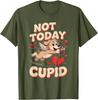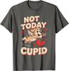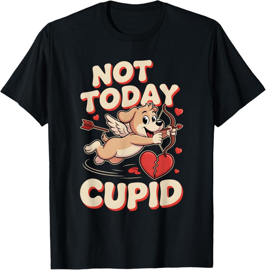 Not Today Cupid Funny Puppy Cartoon Graphic Tee Anti Valentine Casual Short Sleeve T-Shirt