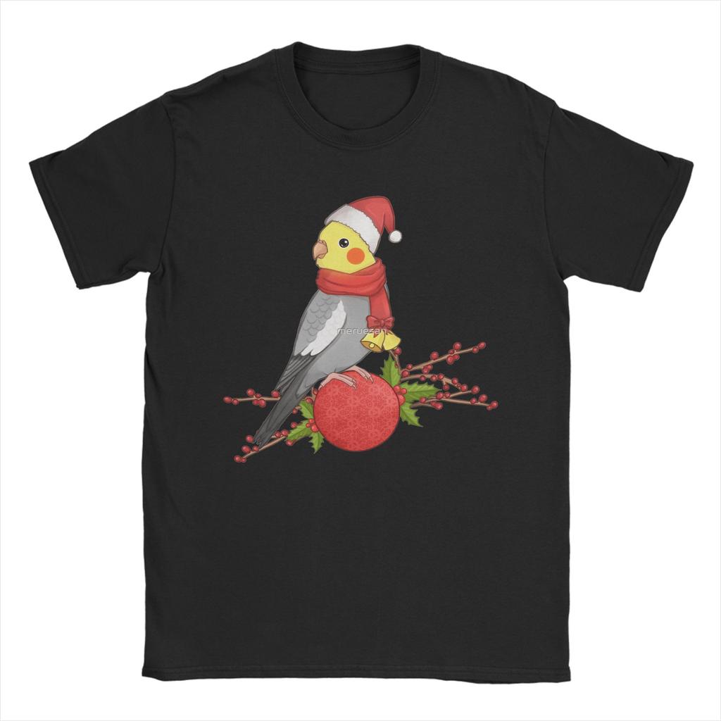 Christmas Cockatiel T-Shirt for Men Humor Cotton Tees Crewneck Short Sleeve T Shirt Birthday Present Clothing