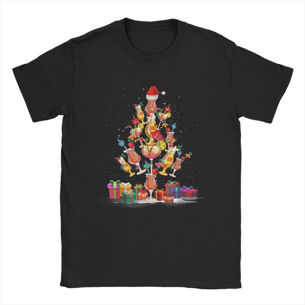 Cocktail Glasses Santa Hat Christmas Tree Drinks Xmas Pajama T-Shirts Harajuku Tee Shirt For Mens Short Sleeve Clothing