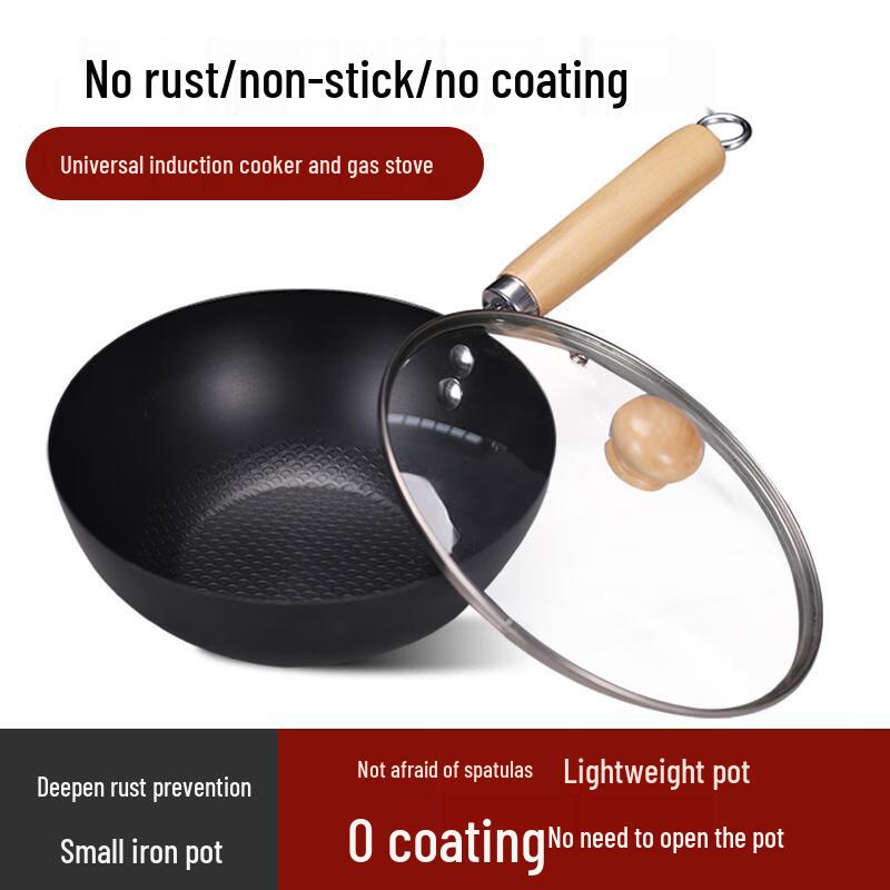 Hak Ka Heung Non-Coated Flat-Bottom Mini Iron Wok with Glass Lid