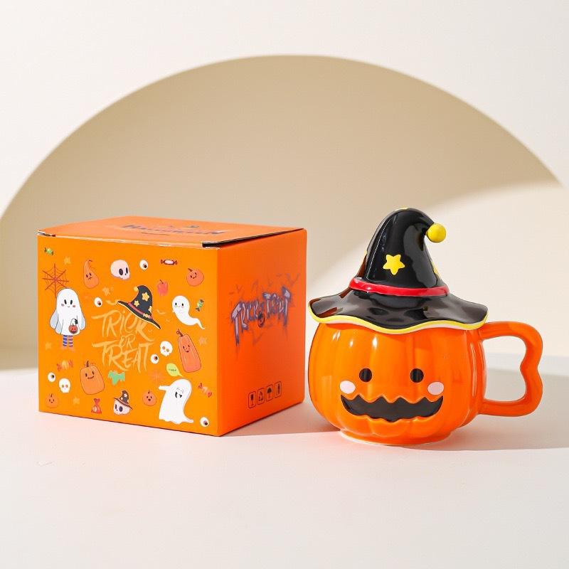 Halloween decorative gift pumpkin ceramic cup with high value mug gift box office funny water cup
