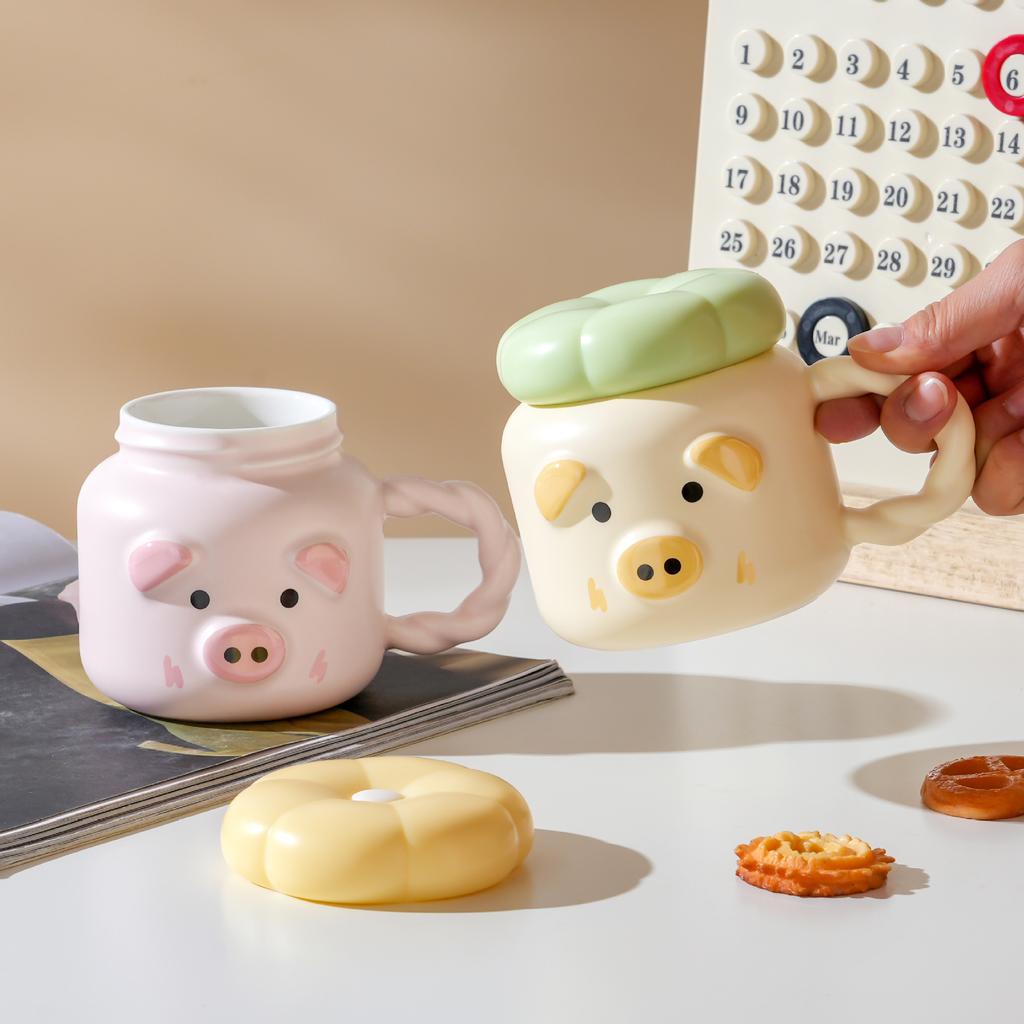 Pig ceramic mug cute with lid spoon water cup household coffee cup couple girl cup high value