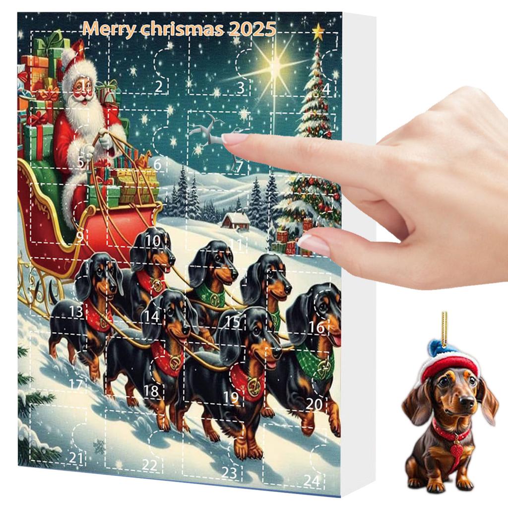 Christmas Advent Calendar with Santa Hats Hanging Dachshund Ornaments Mini Xmas Tree Dog Pendant for Holiday Backpack Ornaments