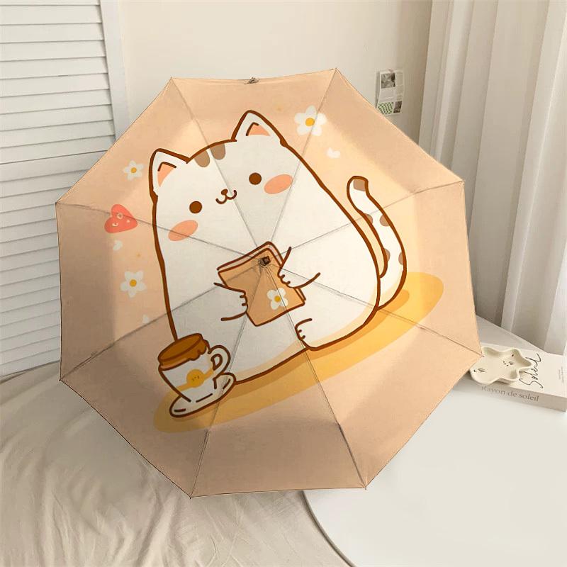 Charming Cat with Coffee and Book: Cute Day Companion Auto Open/Closed Umbrella, Outdoor Travel Accessory, Lightweight & Durable 118