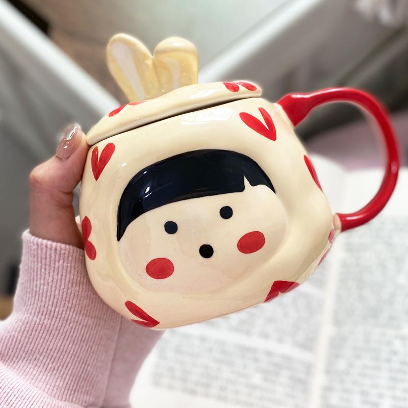 High-value mug cute cute ceramic cup with lid female student home creative girl heart water cup gift