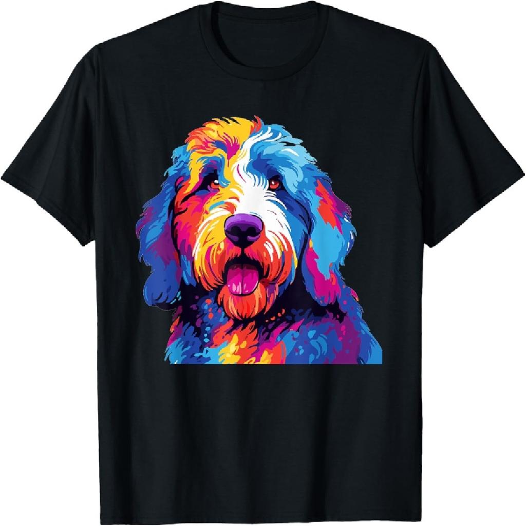 Bernedoodle Dog Portrait Face Pop Art Colorful Graphic T-Shirt
