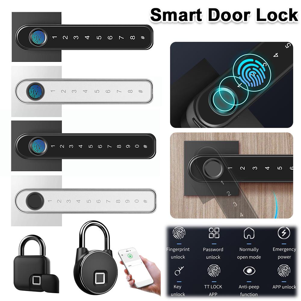 Fingerprint Password Door Lock TTLock App Control Biometric Lever Handle Lock Electronic Door Locks for Home Office with Keys