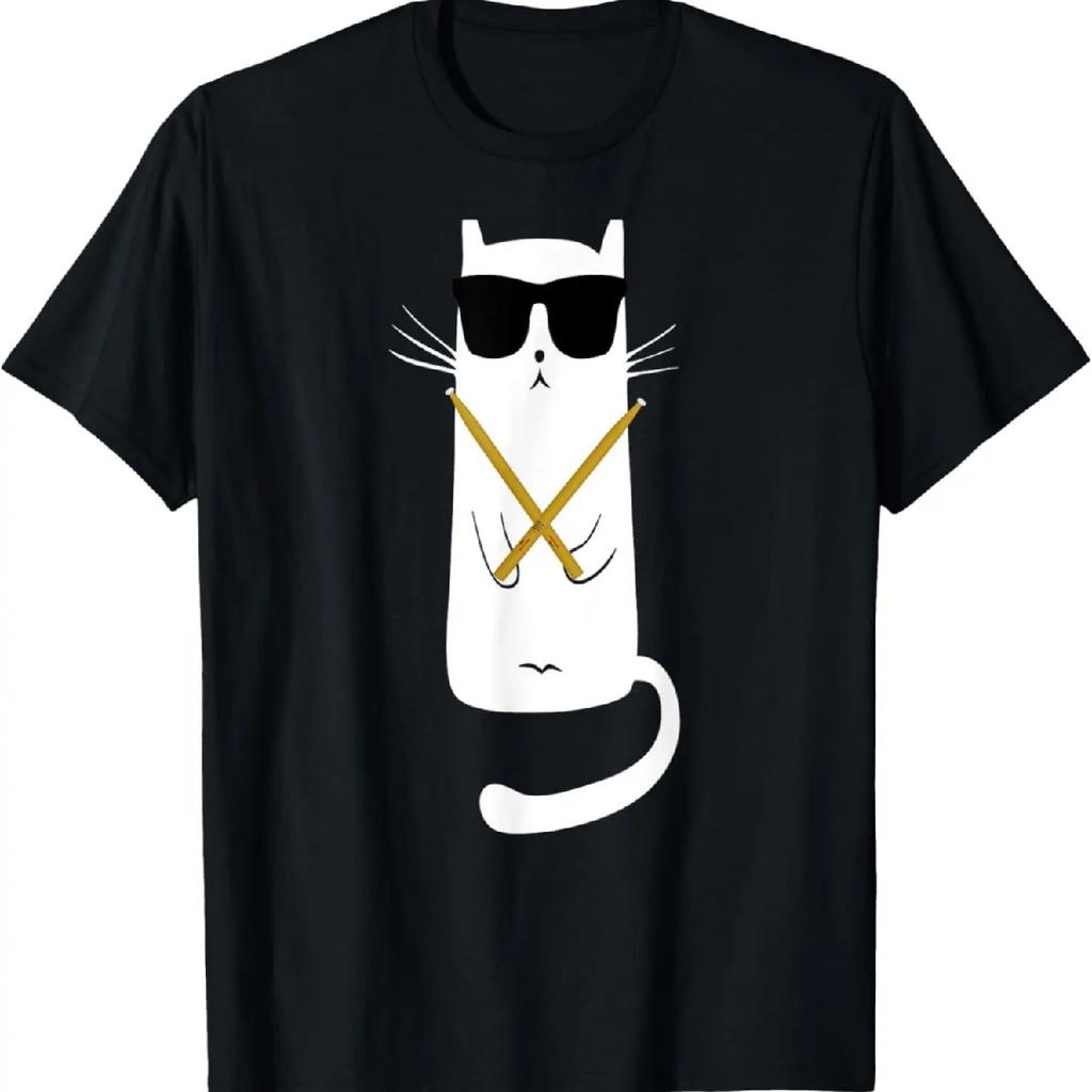 Vtipná kočka v slunečních brýlích hrající na bubny Tričko