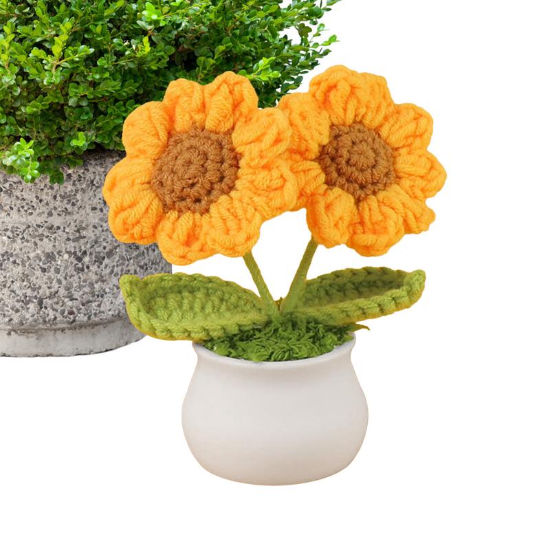 Sunflower Hand Woven Potted Creative Wool Knitting Flower Sunflower Decorations Sunflower Knitted Flower Crochet Decor Gift