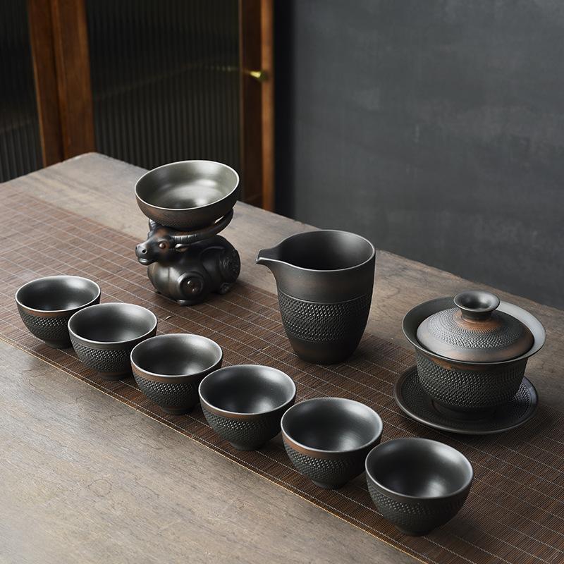 Purple Clay Jumping Knife Kung Fu Tea Set2025New Retro High-End Household Tea Brewing Special Gaiwan Teapot Teacup