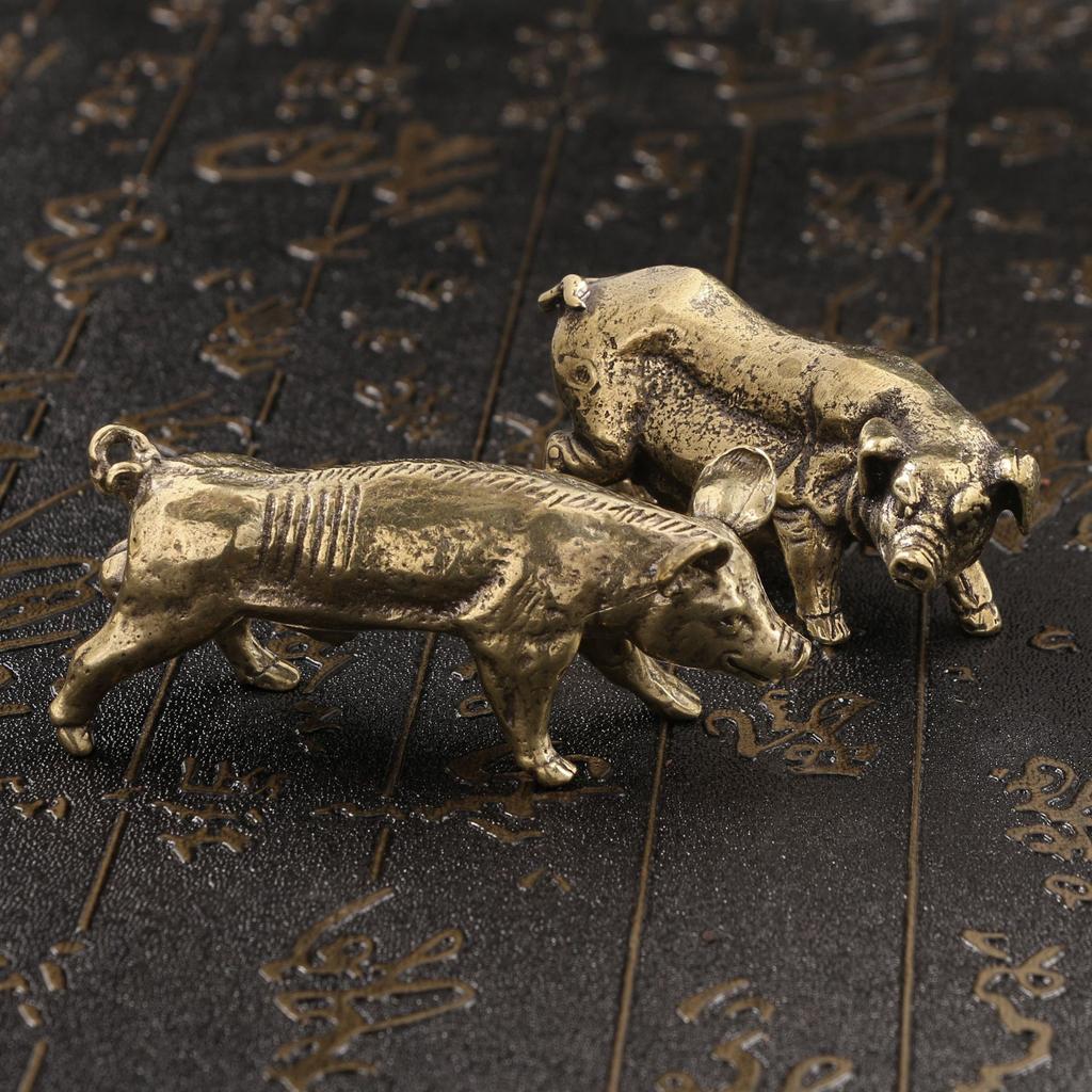 Čajový mazlíček Zvířecí ozdoba na stůl Pevná Hvězdné znamení Vepř Pár Starožitná bronzová řemeslná práce
