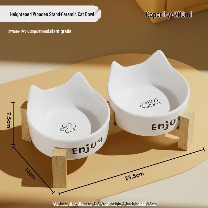 HANDUNYOU Zvýšená keramická dvojitá miska pro kočky s dřevěným stojánkem