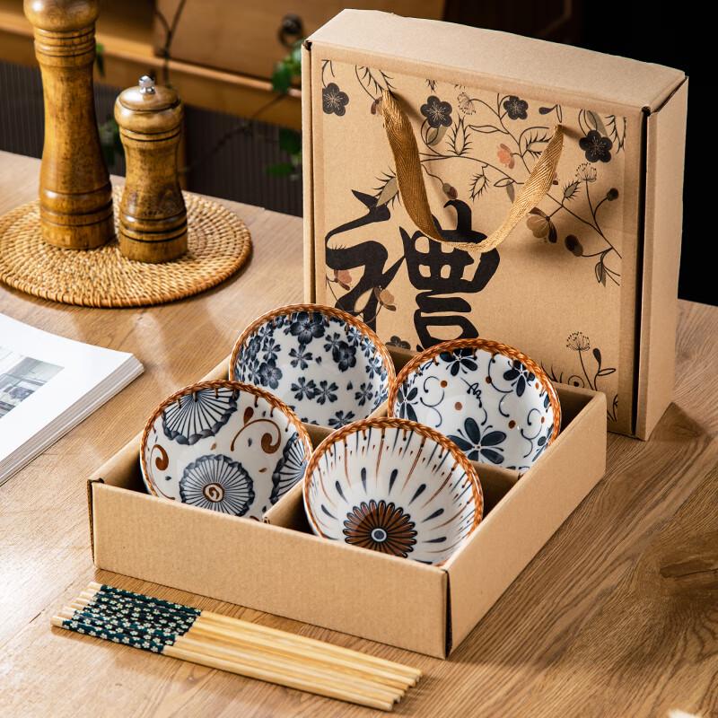 Elegant Blue & White Porcelain Bowl & Chopstick Gift Set