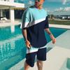 Men's 3D Printed Sports Two-Piece Set O-Neck T-Shirt Stripe Color Printing Casual Fitness Short Sleeve Tops Shorts