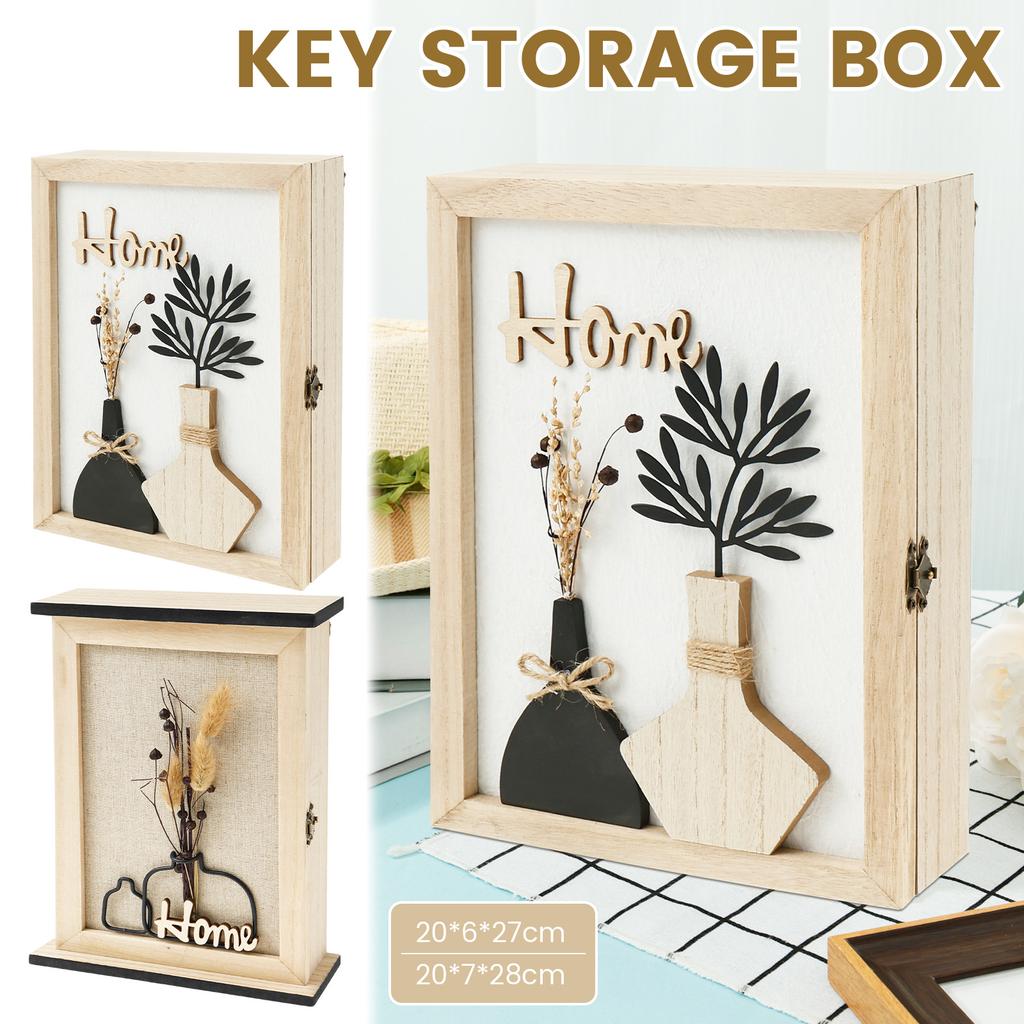 Sturdy Wall Mount Key Box: This wall mounted key box is made of wooden and metal materials, ensuring great durability. The box door features a unique "Home" letter pattern print and an elegant dried flower design, making it a perfect fit for home decoration and giving your home a rustic, country chic look