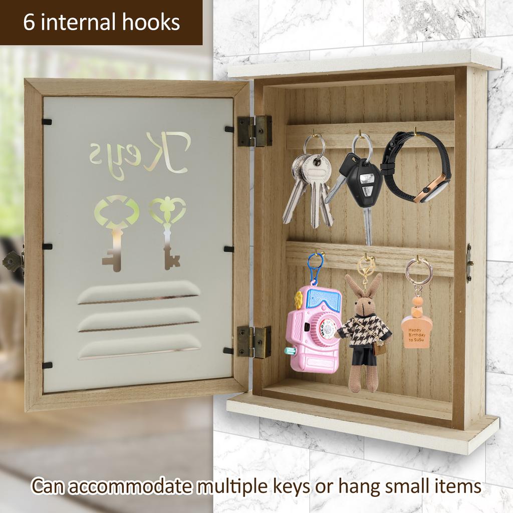 Key Box with 6 Internal Hooks: This wall key holder is an excellent addition to your home or office, helping you organize your keys efficiently. It has 6 separate hooks inside, with a large spacing between each hook, which can hold multiple keys or hang small items