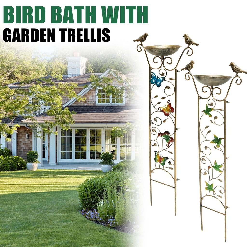 1.Decorative Design: This bird bath features two delicate metal birds and a small bowl on top, attracting birds to bathe and play. Paired with colorful hummingbird or butterfly decorations, it adds artistic charm to gardens or patios while providing support for climbing plantings