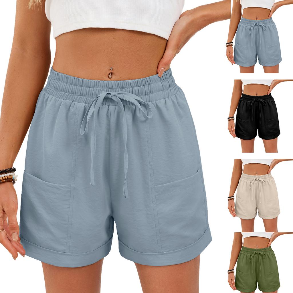 Women's Casual Fashion -Color Elastic Waistband Pocketed Wide-Leg Straight-Cut Shorts