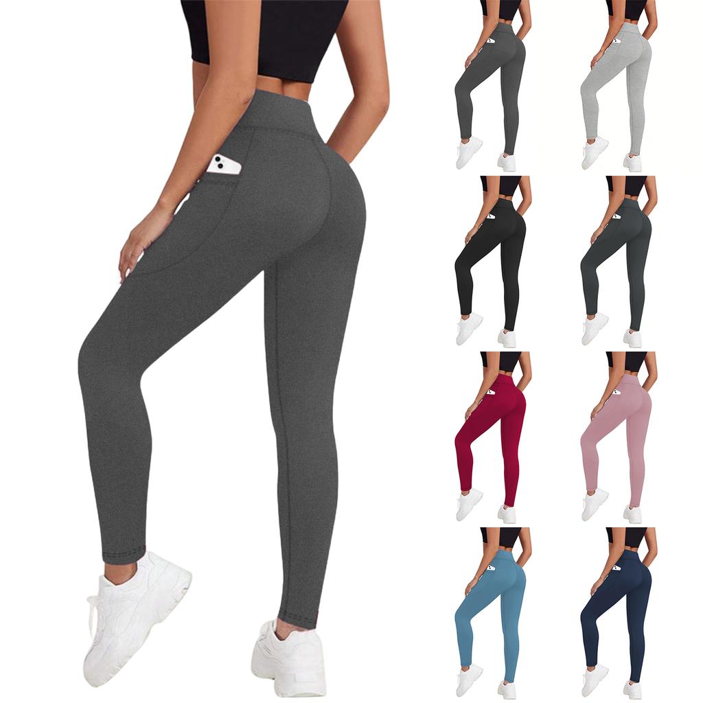 Women's Fashion High Waist Hip Slim Fitness Cropped Pants Side Pocket Sports Leggings