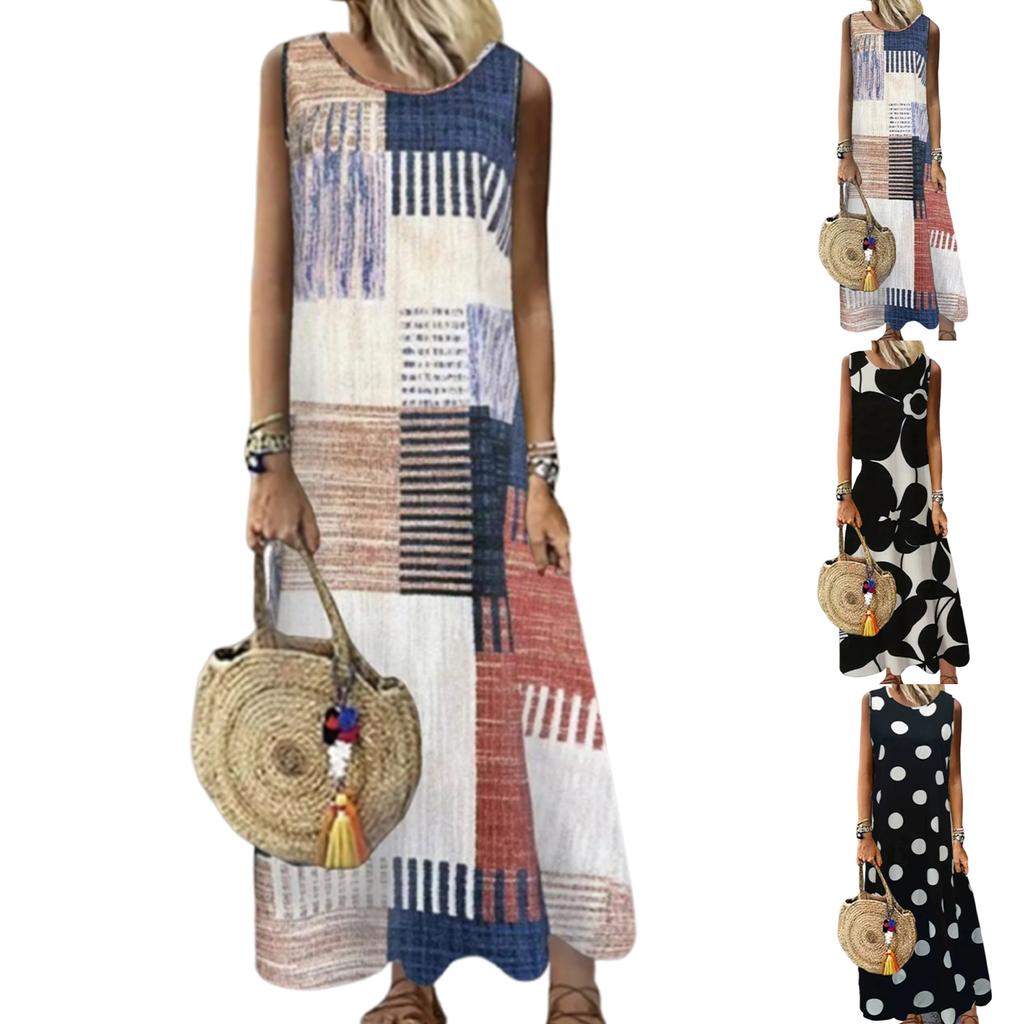 Women's Fashion Printed Round Neck Sleeveless Vacation Casual Dress