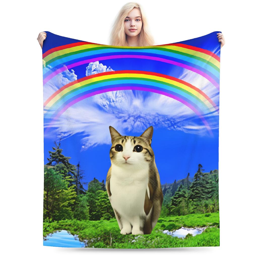 Super Soft Blanket Students Decorative Rainbow Meow Owl Throw Blanket Flannel Bedspread For Couch Chair Novelty Sofa Bed Cover