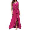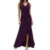 Sexy Slit Ruffled Sleeveless Evening Women's Dresses Fashionable V Neck Slim Pleated Elegant Female Maxi Long Dress