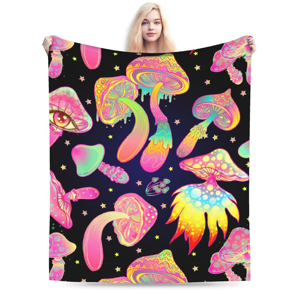 Magic Mushrooms Psychedelic Blankets Velvet Spring/Autumn Multi-function Ultra-Soft Throw Blanket for Bed Car Quilt
