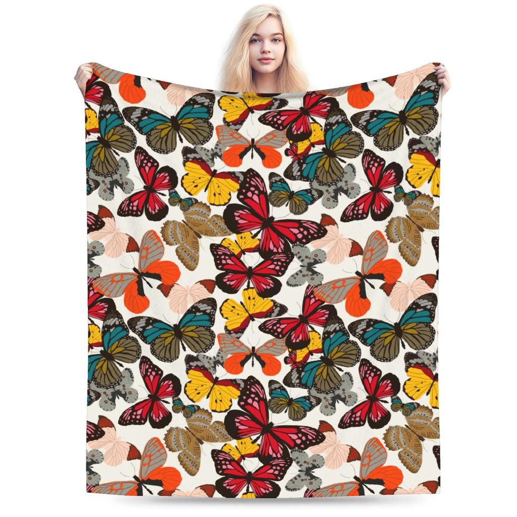 Colorful Butterfly Pattern Blanket Flannel Printed Multifunction Soft Throw Blanket for Home Bedroom Bedding Throws