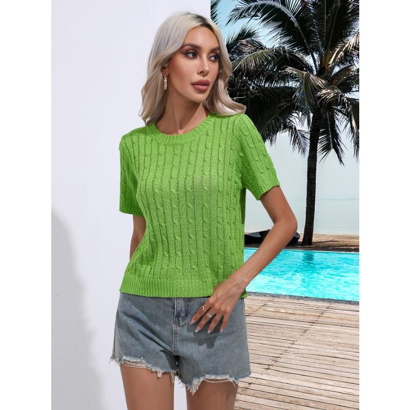 Short-sleeved Pullover Sweater Spring and Summer New Round Neck Solid Color Sweater for Women