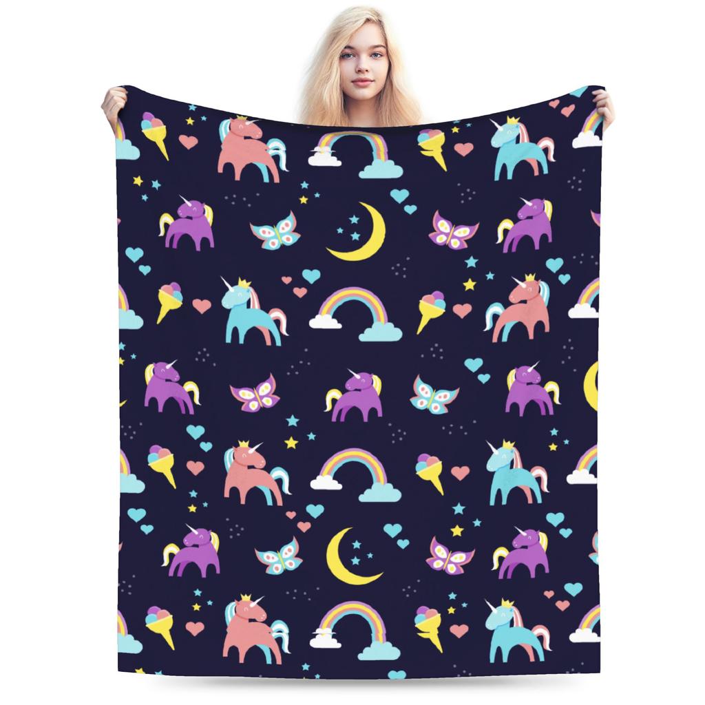 Cartoon Rainbow Unicorn Blanket Flannel Summer Multifunction Super Soft Throw Blankets for Home Couch Bedspread