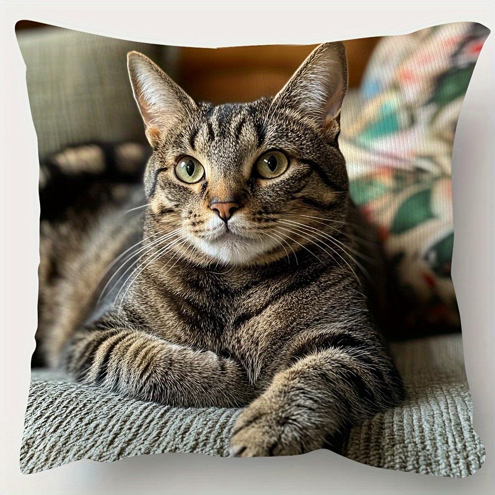 1 Modern Tabby Cat Portrait Pillow Cover - Soft Polyester Short Velvet, Single Side Print, Zipper Seal, Machine Washable - Sofa, Living Room,