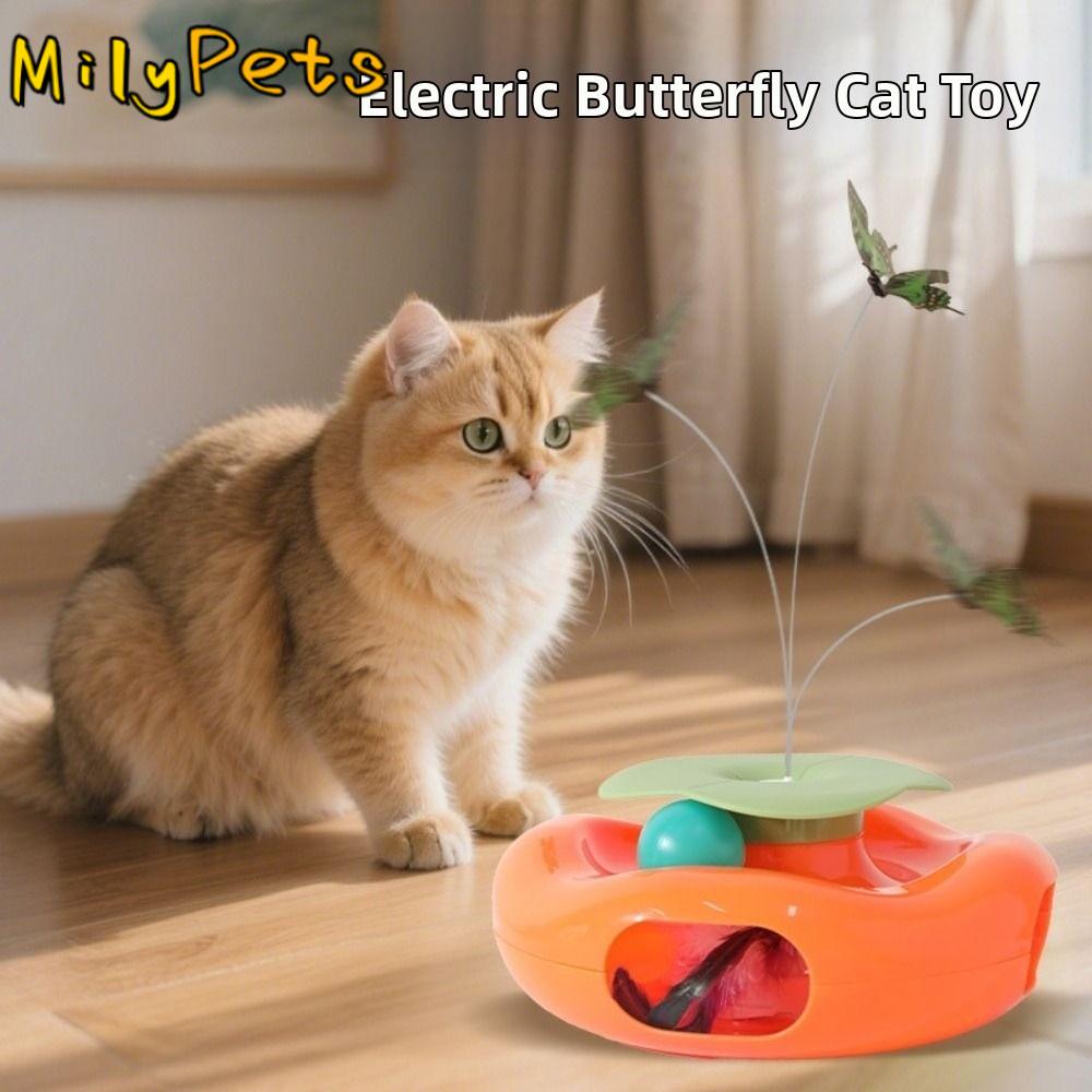 Creative Electric Cat Rotating Toy Non-slip Built-in Feather Butterfly Cat Teaser Toy Cartoon Cute Smart Pet Turntable Toy