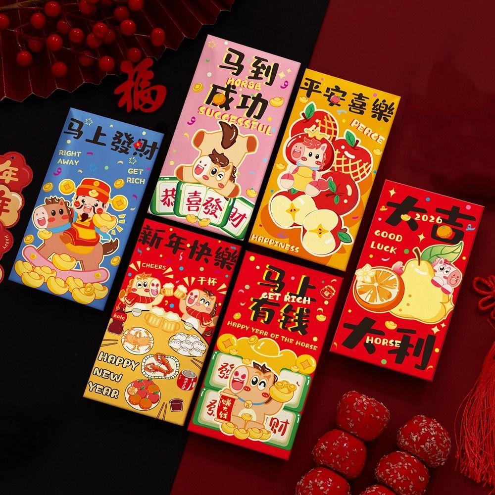 6Pcs Paper 2026 Horse Year Red Envelope Cartoon Chinese Style Spring Festival Envelope Blessing Traditional Lucky Money Bag