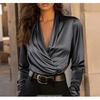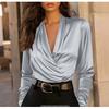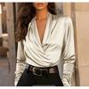 Elegant Satin V-Neck Blouse - Professional Long-Sleeve Versatile Top for Office & Daily Wear (Multiple Colors)