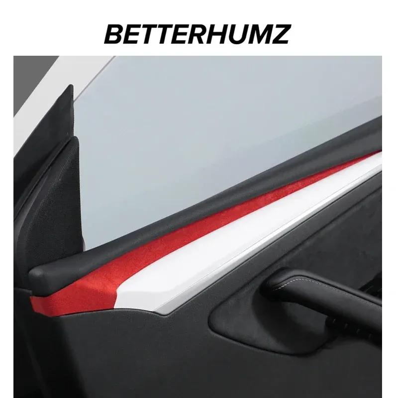Betterhumz For Tesla Model Y Model 3 Car Door Handle Side Trim Armrest Strip Made of Alcantara Cover Interior Decor Accessories
